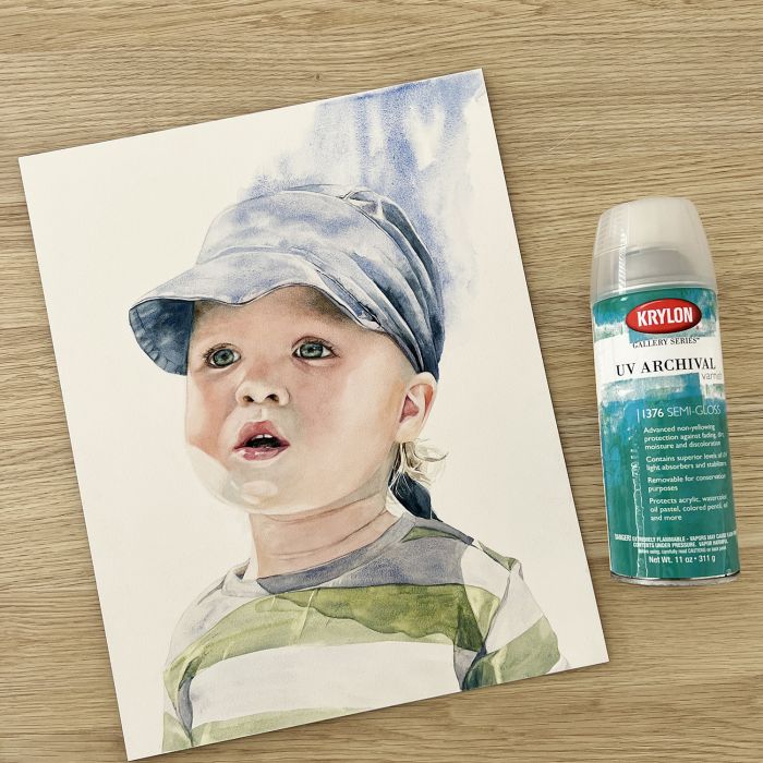 If you would like to display a watercolor on Aquabord, without glass, we recommend a “fix” layer, followed by a varnish.