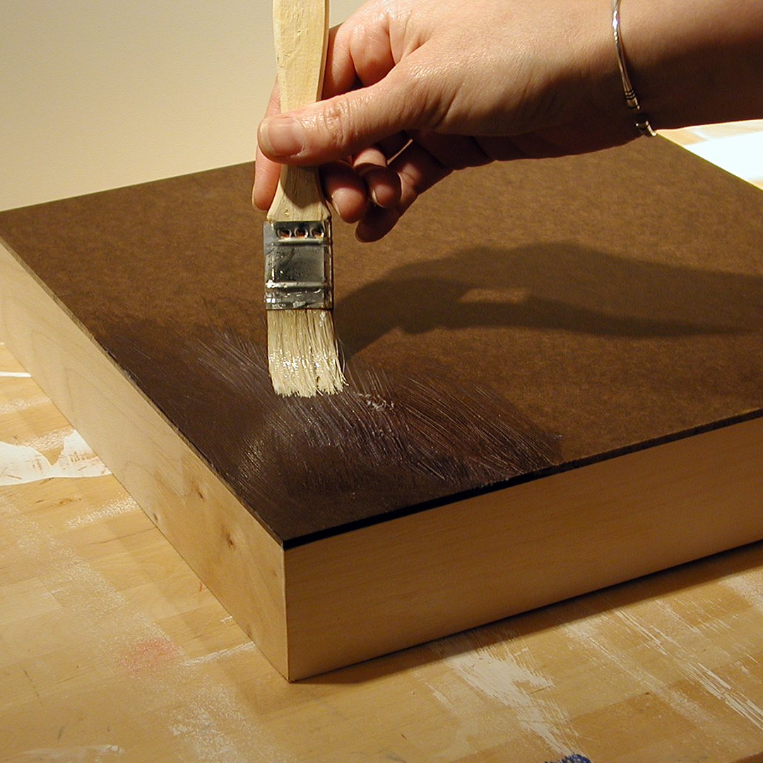 A: Start by applying two coats of PVA size to the surface of the panel. When dry, apply the oil ground of your choice, following the manufacturer’s instructions. Apply several thin coats instead of one thick coat. This allows the ground to dry evenly and maintain its soft texture.