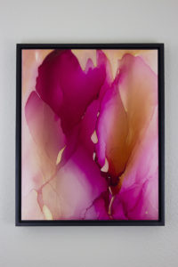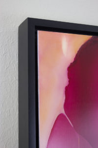 Andrea frames her smaller works in Ampersand Floaterframes. These allow her to offer a quality, easy, consistent framing for both the flat and cradled panels. For larger custom panels, she offers them as unframed cradled pieces or frames them in floater framed by Metropolitan Picture Frames.