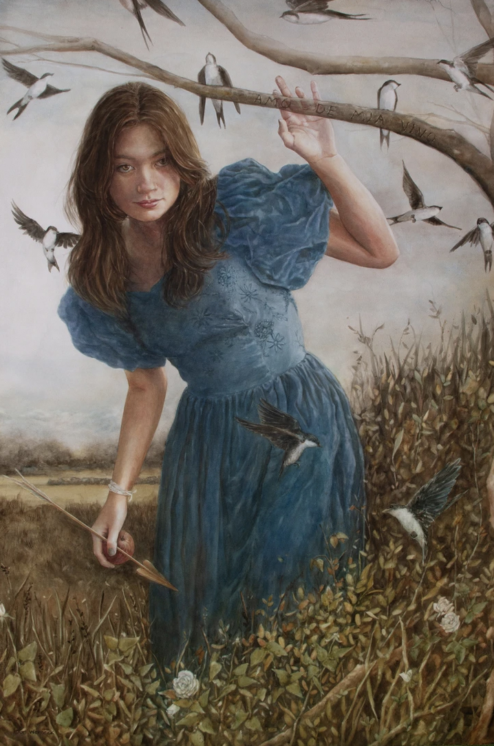 In only a few cases, especially the ones related to foster children. In most cases, the idea of a painting starts when I’m looking at the photos I take of my models. I open all the photos I like in Photoshop and begin my jigsaw puzzle. Pieces of several images of the same model or between different models are used to create a composition. Then I let the image that is forming create the story.