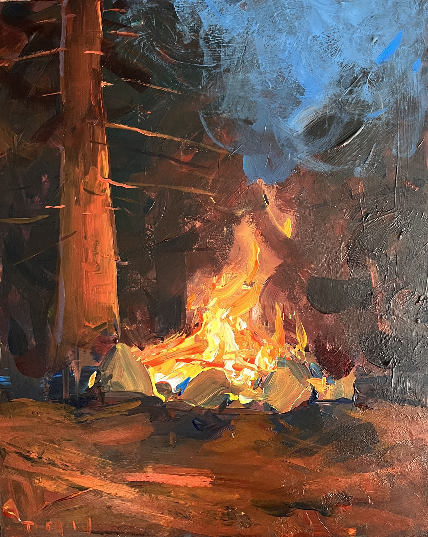 Campfire Stories, 10x8, oil on Ampersand Gessobord