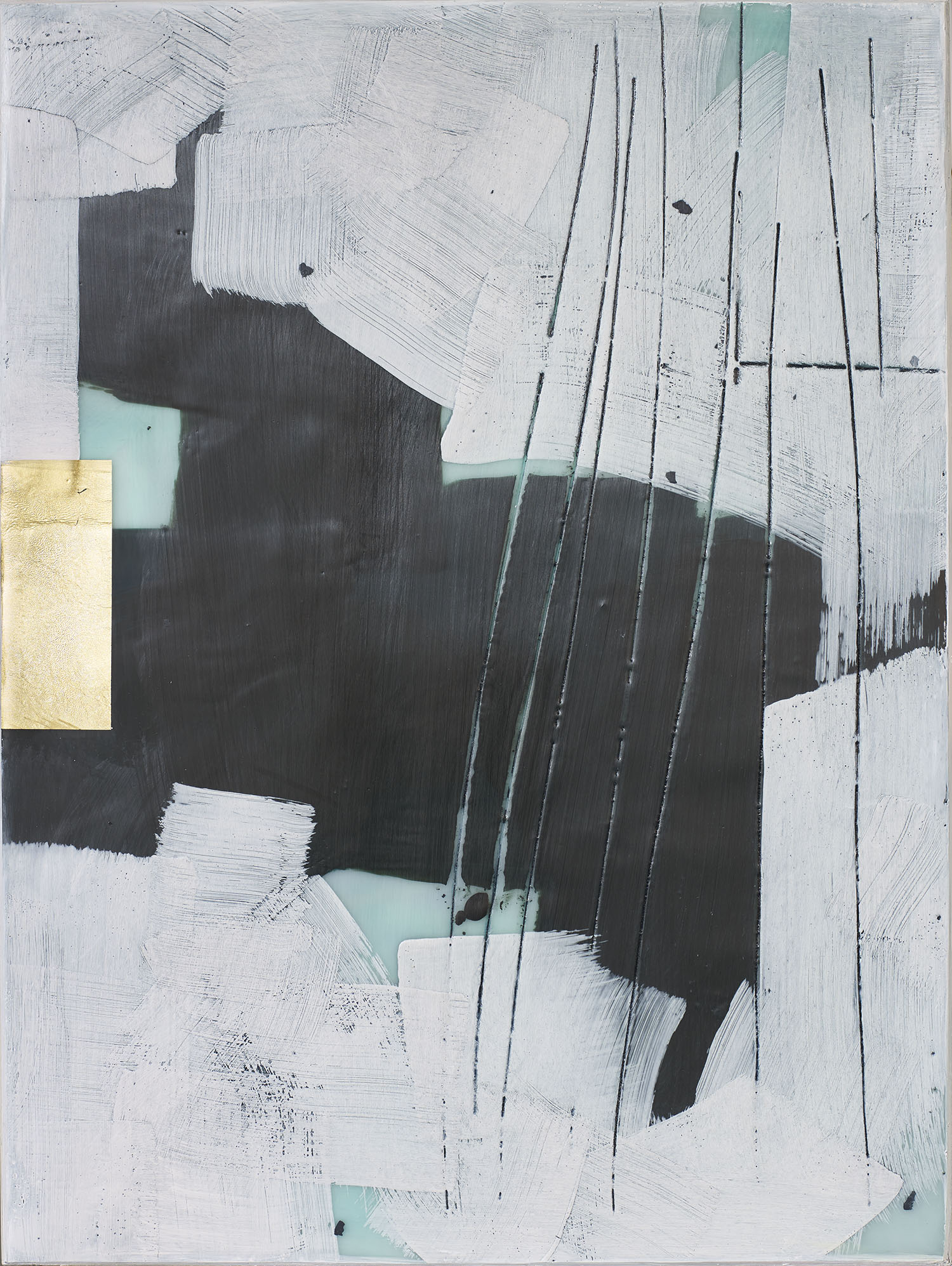 Regn, 24x32, encaustic, oil, and 23 karat gold leaf on Ampersand Encausticbord