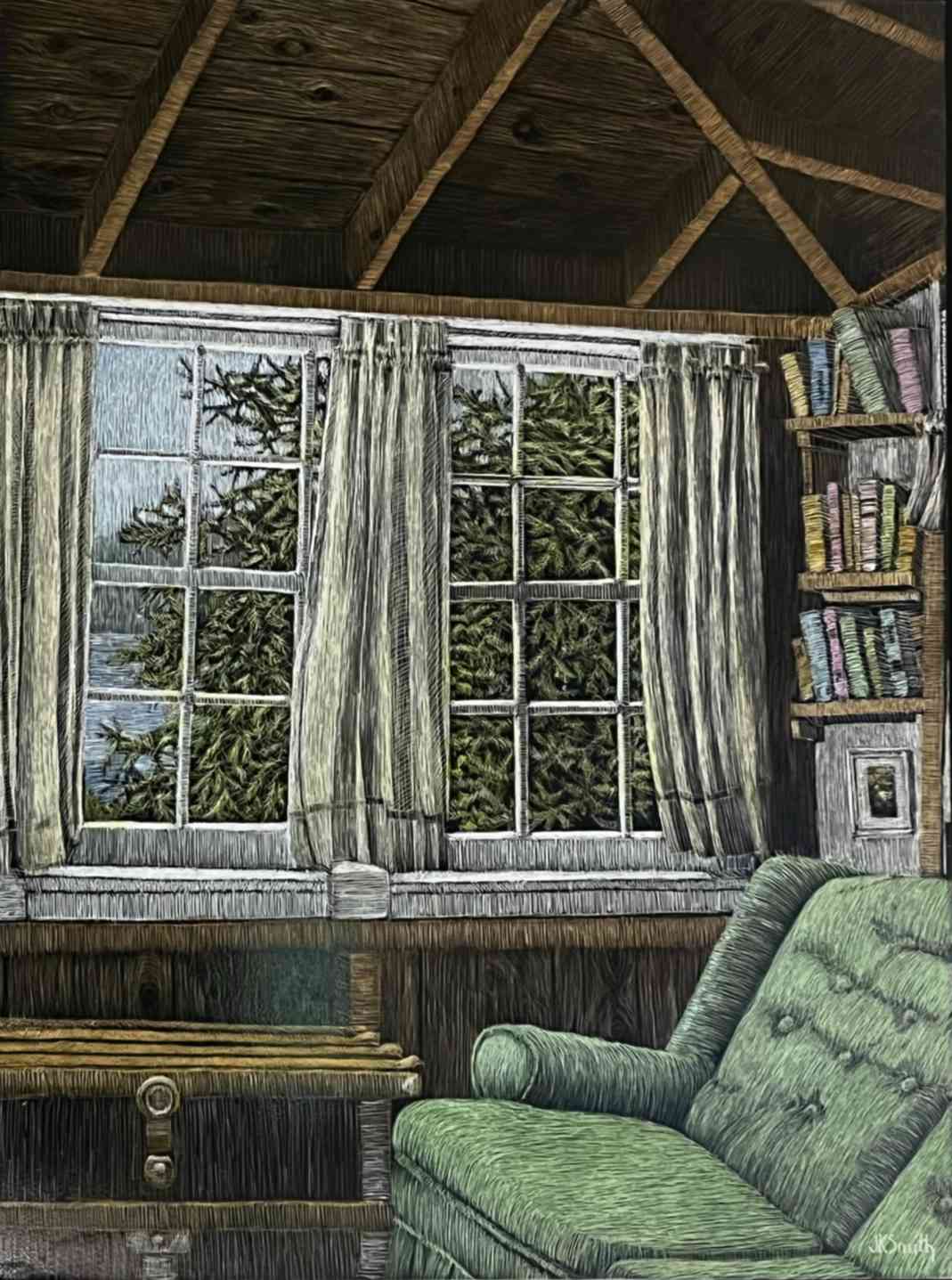 Joe Smith (b. 1954) is a Massachusetts artist who best known for his scratchboard works featuring trees and forests. His art connects his lifelong enjoyment of drawing with his career as a forester and conservationist. This career has brought him to places off the beaten path, and his art has allowed him to capture the beauty he has found there.