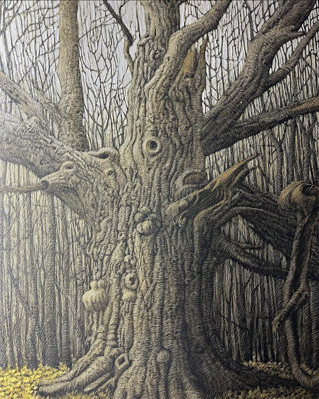 Wizard Tree, 16x12, scratchboard on Ampersand Scratchbord