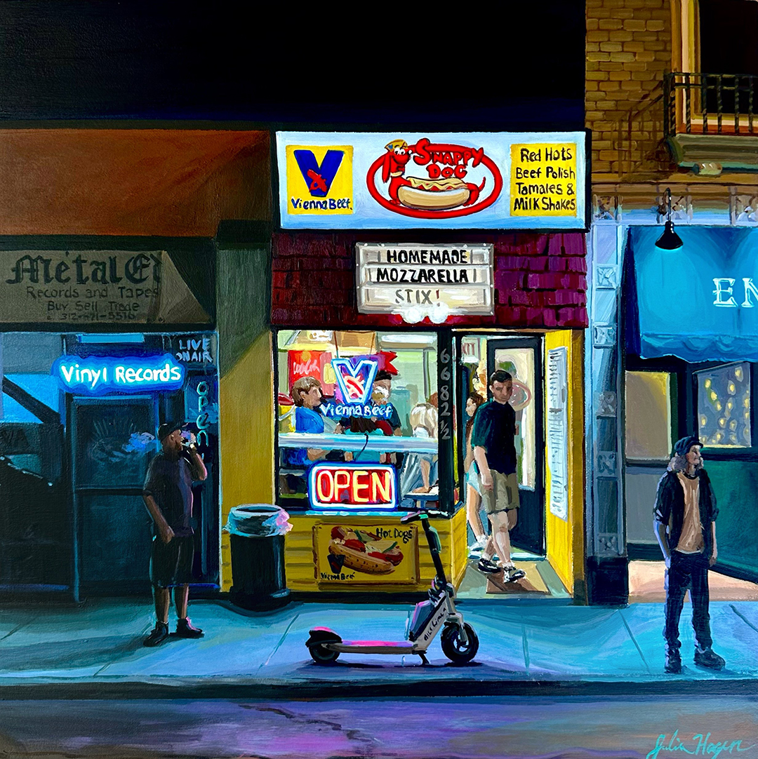 I feel like this path to the hot dog stand series makes so much sense now. I had been searching everywhere for what to become as a person, and as an artist, but it was right under my nose the whole time. I’m just a Chicago girl who needed to come home and dive into her love of this city to find it. To see more of Julia's work, visit her website, Instagram, Facebook, and TikTok.