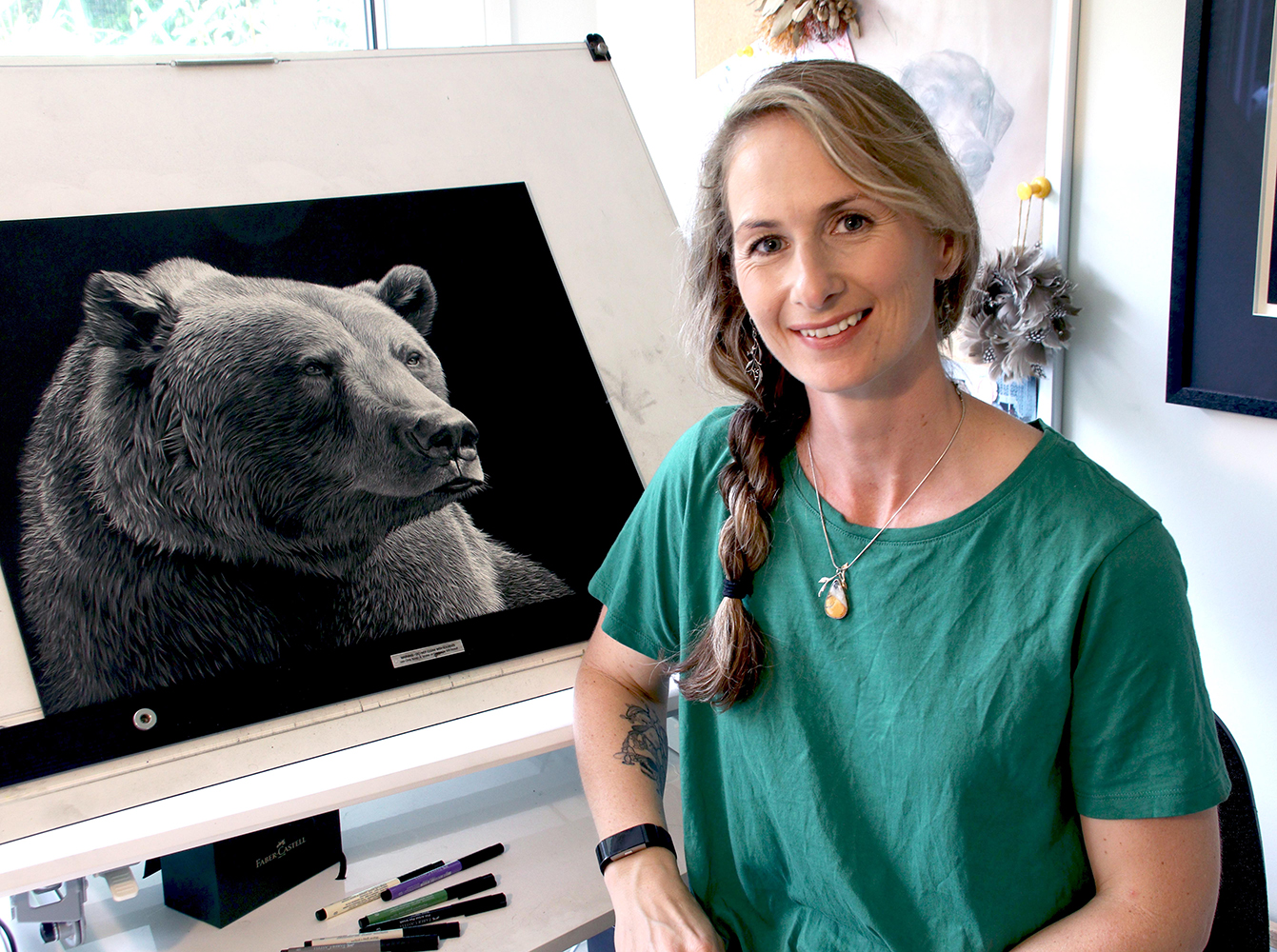 Wow - thank you, that’s lovely to hear! To be honest, I don’t know if my science background has much to do with bringing my subjects to life, and I would say that it’s more my personal connection to a subject. Unless it’s for a pet commission, I have a strong preference for using my own reference photos for artworks (or those of my lovely husband, who has a talent for photography). We both love travelling, exploring new places, and taking photos to capture moments. So, when I’m in front of a board, scratching away at a grizzly piece, for example, I do tend to think about where we were, the intense gaze of the bear, and how long we spent just watching them in absolute awe. Somehow, I suppose that must translate into the personalities and emotions I evoke (hopefully!) And regarding pet commissions, I’m a huge animal lover and definite dog person, so I totally get the love that people develop for their beloved animals. To see that connection and the emotion it stirs when I hand over an artwork is the best feeling!