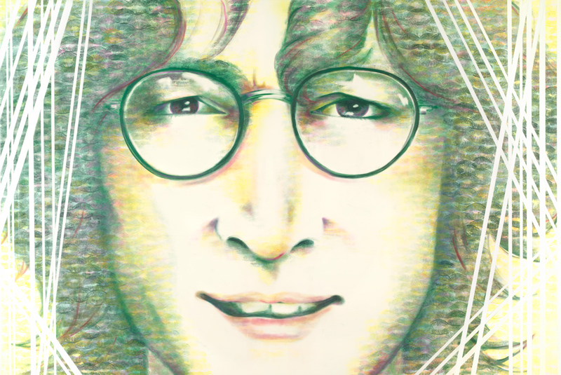 Lennon, 24x36, Lipstick and Resin on Ampersand Claybord