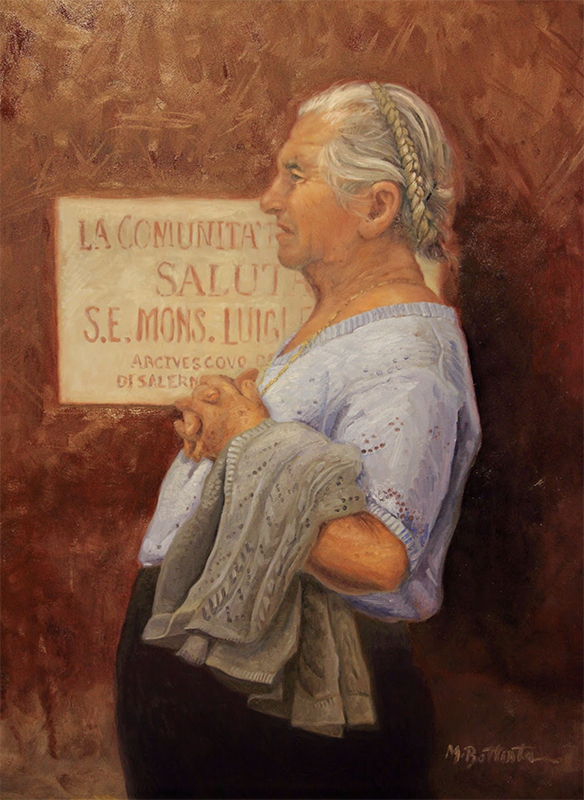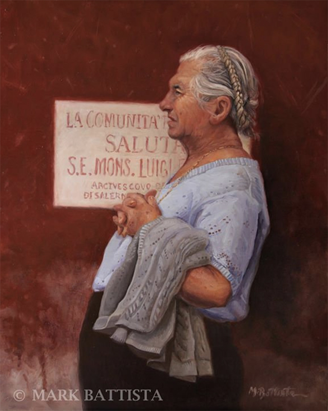 This painting was inspired by a woman that was watching a procession in a small piazza in Italy.
