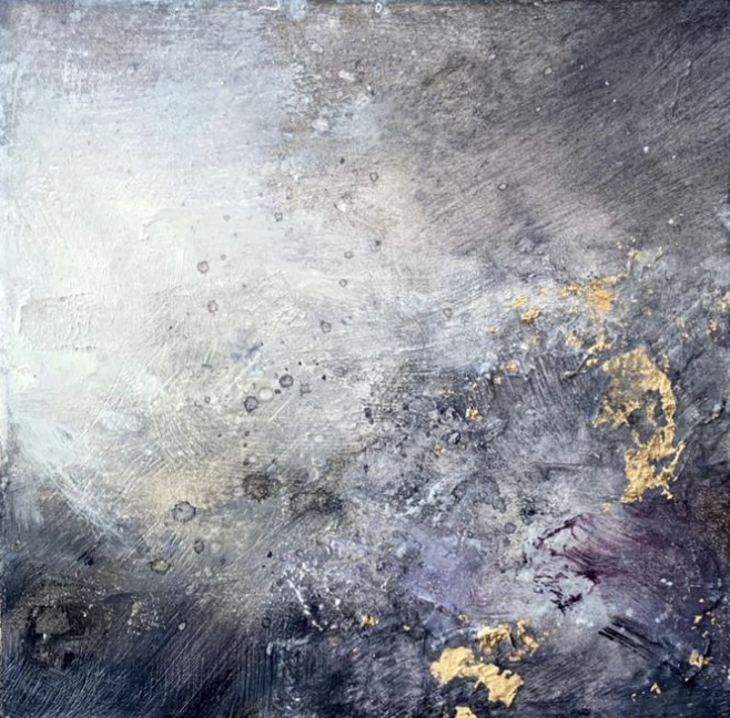 That Moment, 10x10, oil and encaustic on Ampersand Unprimed Basswood with White Floaterframe