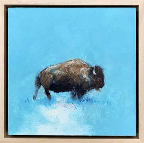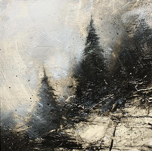Treading, 8x8, oil and cold wax on Ampersand Gessobord with Maple Floaterframe