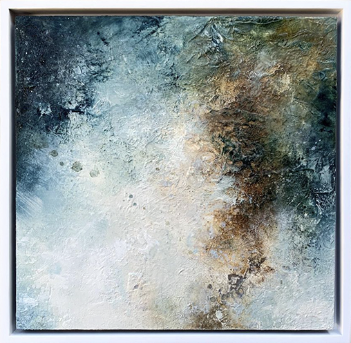 When You Arrived, 10x10, oil and encaustic on Ampersand Unprimed Basswood with White Floaterframe