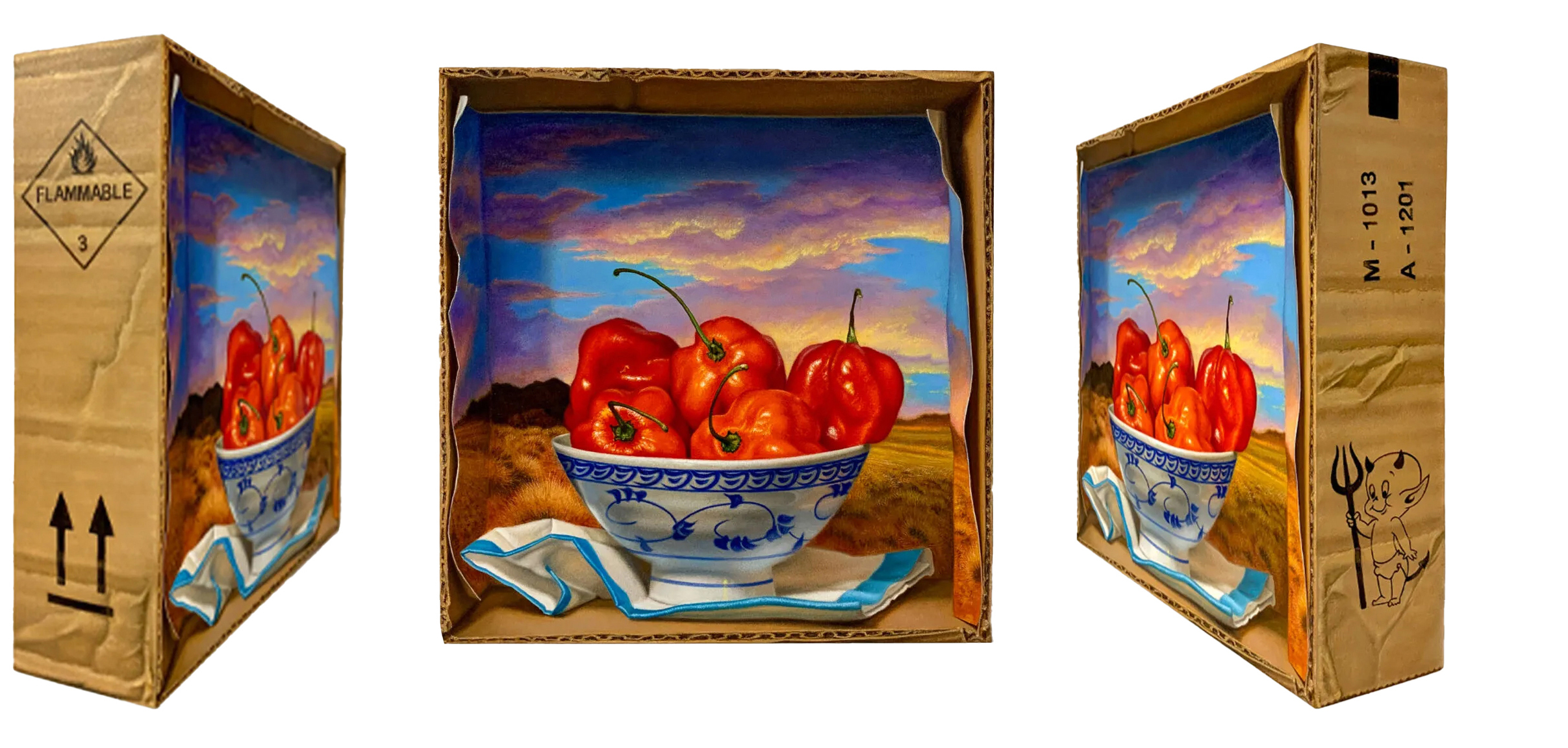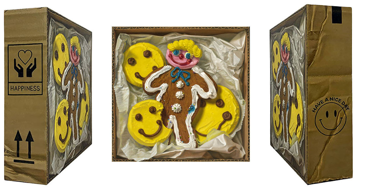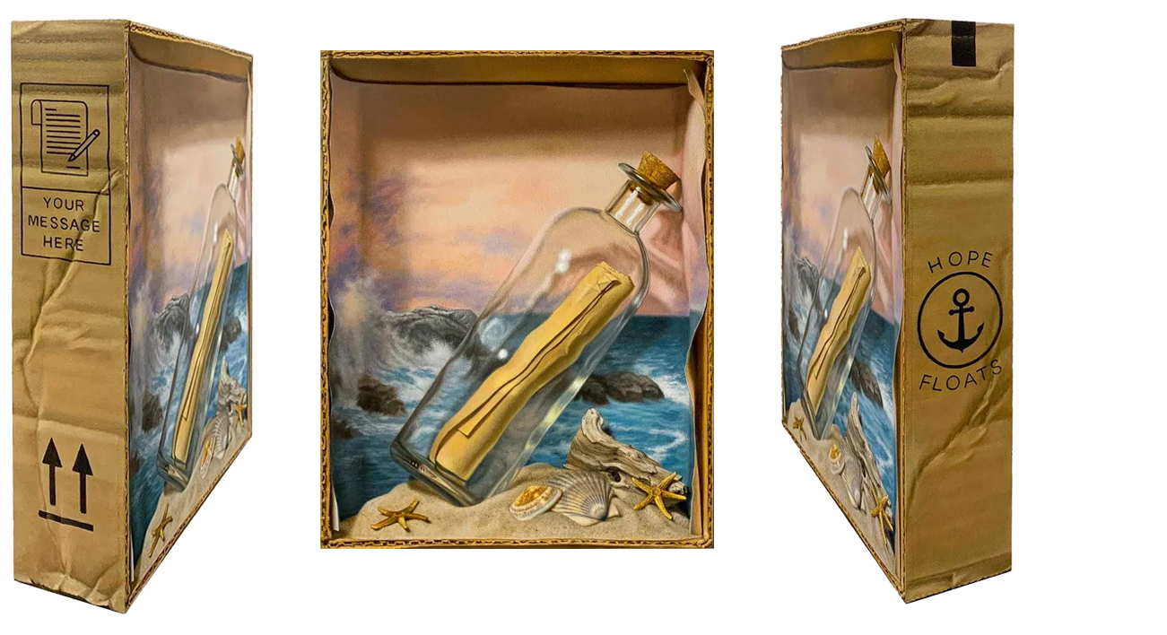 I love making art as an object - it’s a very niche part of Trompe l’oeil painting. Three-dimensional panels like the Ampersand cradled panels give you a chance to communicate something extra special to the viewer. I had known about Ampersand panels for years but hadn’t tried them until I thought of doing my cardboard box series. The two-inch deep panels were perfect for creating the illusion of a cardboard box. Painting the sides to look like cardboard and the narrative side ‘stamps’ are some of my favorite parts of those paintings.