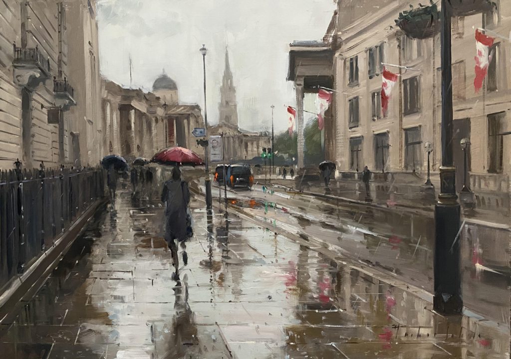 Rainy Day, Pall Mall East, 30x40cm, oil on Ampersand Gessobord