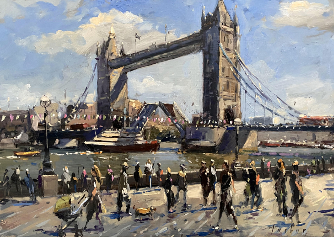 The Opening of Tower Bridge, 30x40cm, oil on Ampersand Gessobord