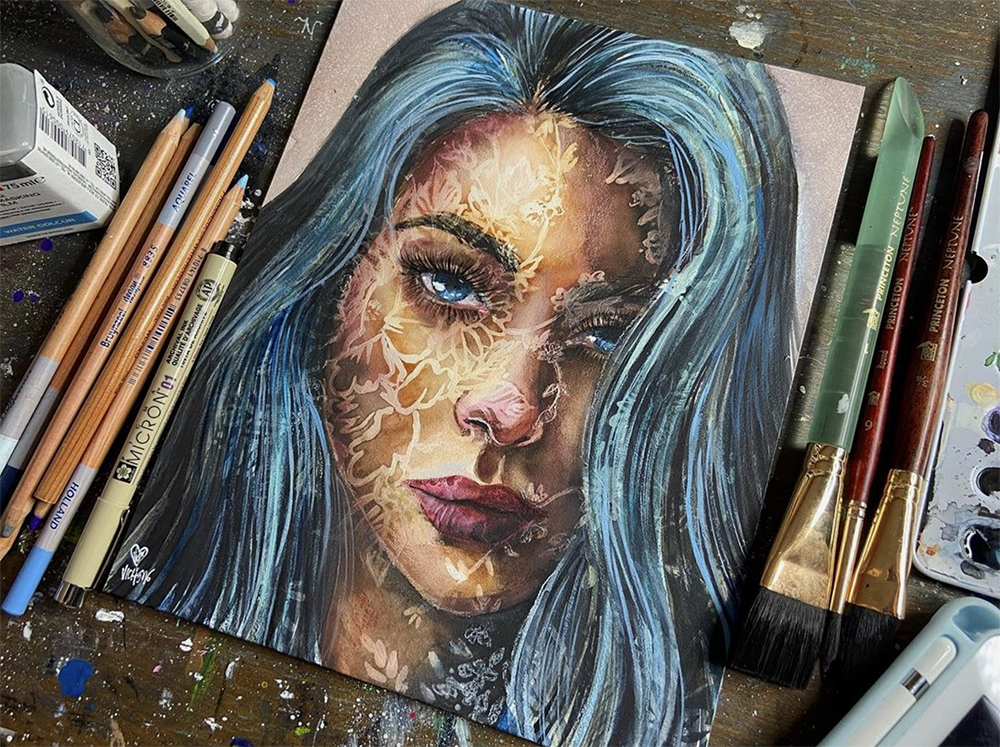 Since 2016, Vic has been an art ambassador for Royal Talens and has internationally taught workshops, demos, and paints for them often. She has worked closely with various other art distributors such as Sakura, Princeton, Strathmore, and Ampersand Art.