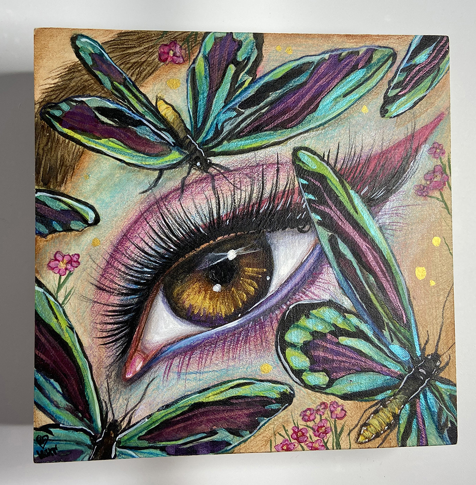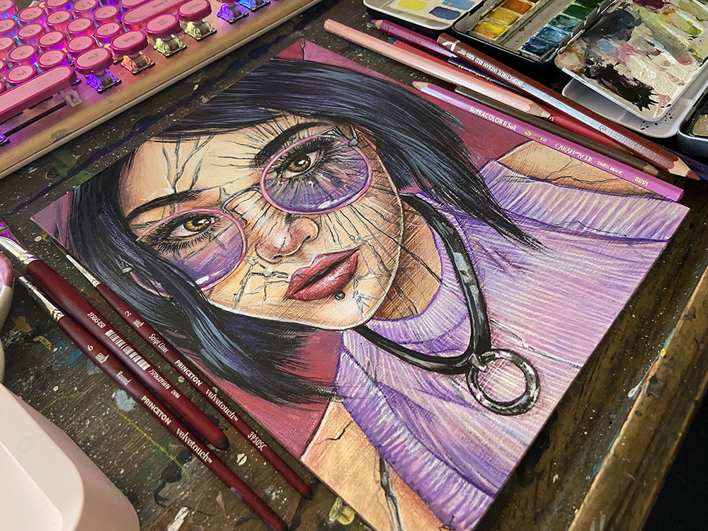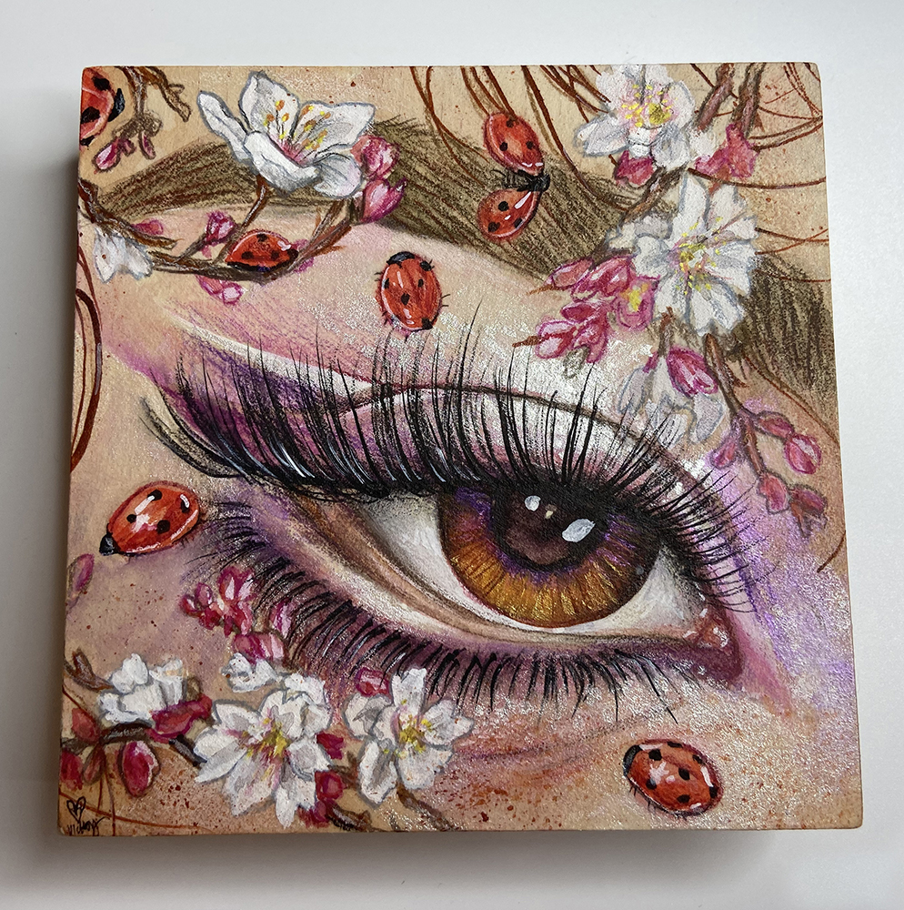 Feminine eyes are my greatest muse. Eyes have always been this reoccurring theme throughout my art because of the attention they demand. I am always captivated by the expressions that a single eye can portray. Visually there’s a lot to focus on when illustrating eyes, so much form and texture, not to mention the colors. I tend to get lost in the detail while creating them.
