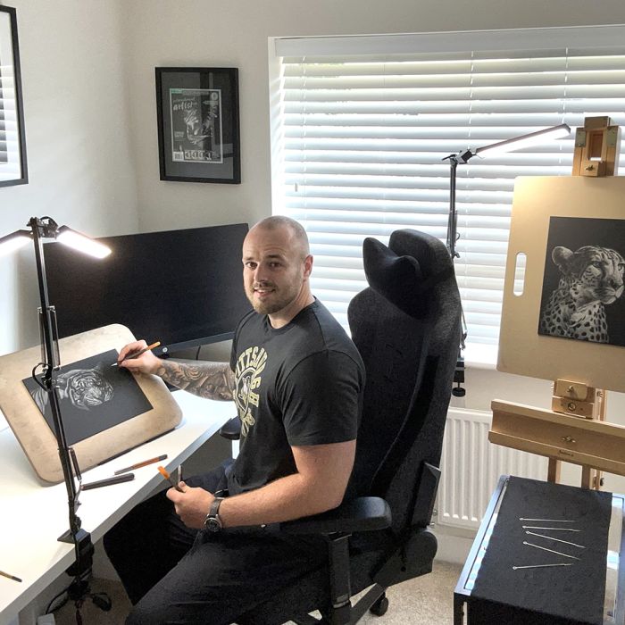 Conor Smith, a wildlife artist from Staffordshire, UK, is known for their highly detailed and realistic artwork, specializing in the medium of scratchboard.