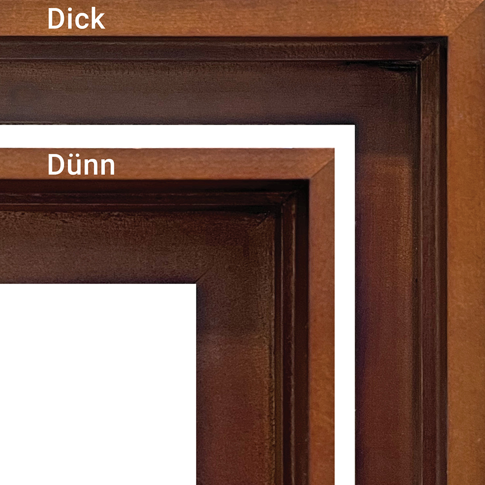Der breitere Sockel, der tiefere Falz und die vorgebohrten Senkbohrungen sorgen dafür, dass Ihr Kunstwerk geschützt ist.