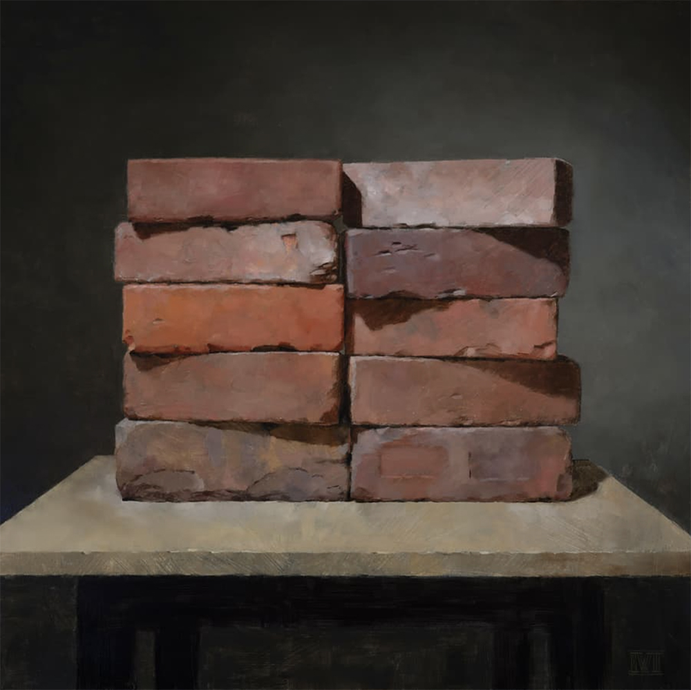 Ernest Vincent Wood III, Double Stack, 30x30, oil on Ampersand Hardbord